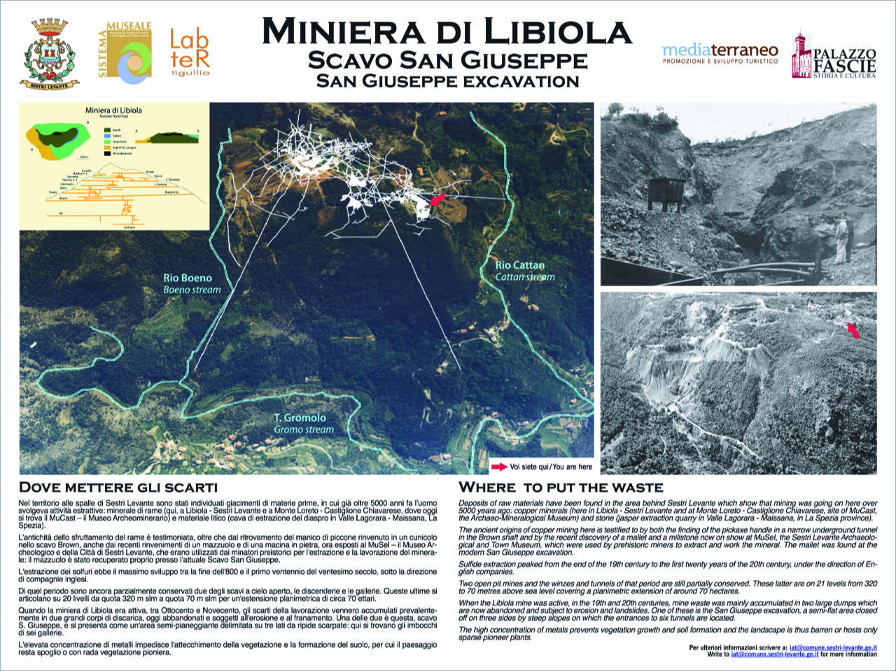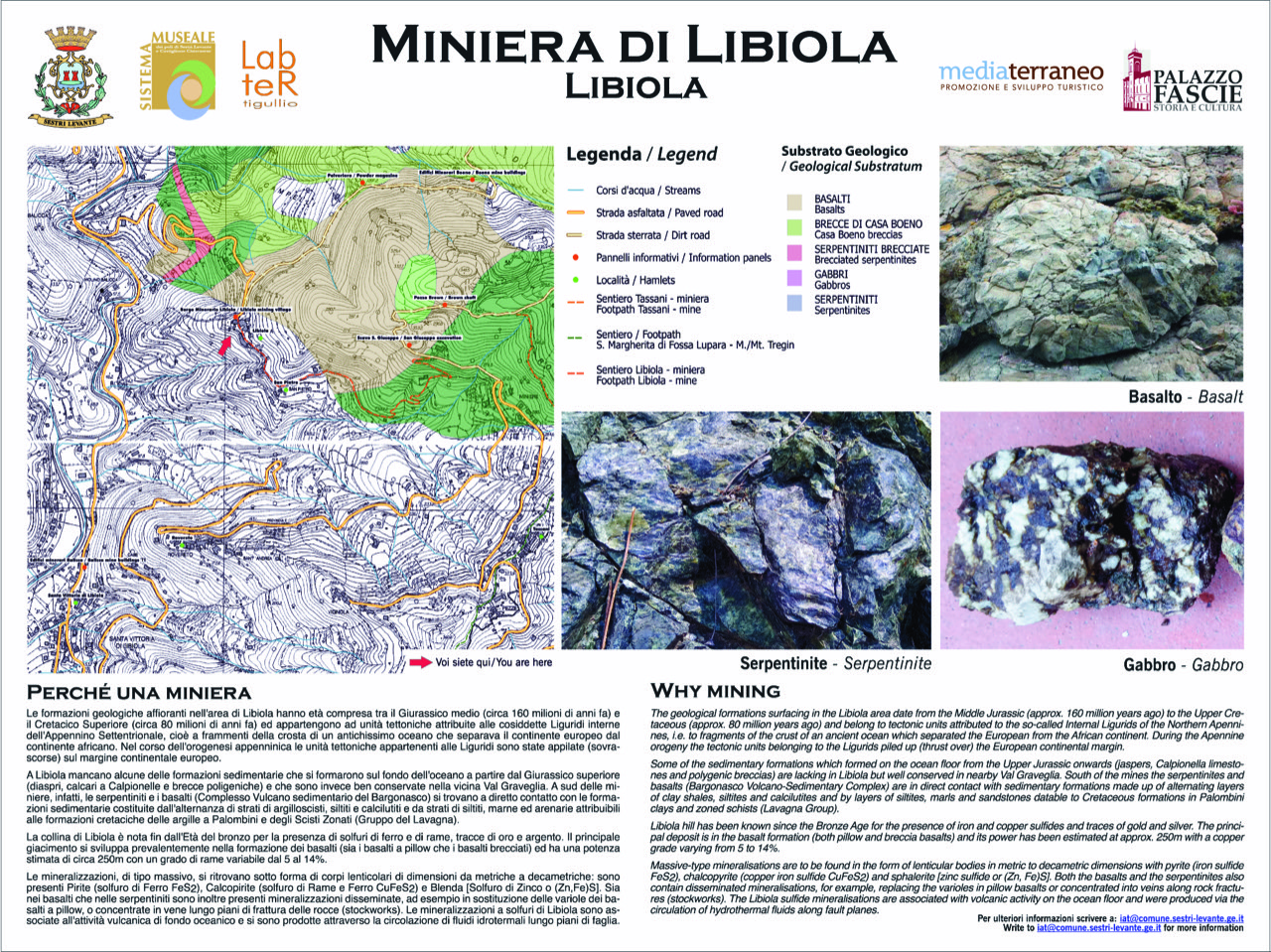 Libiola hill has been known since the Bronze Age for the presence of iron and copper sulfides and traces of gold and silver.